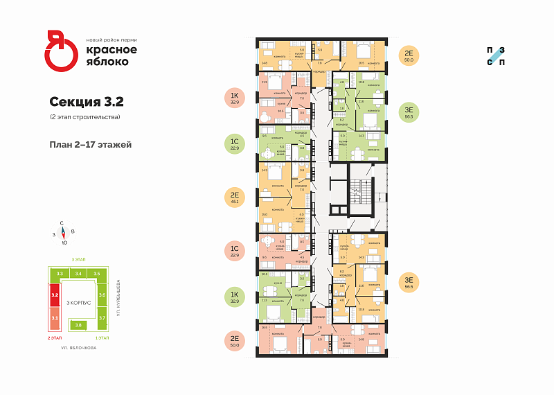 Новый район «Красное яблоко» - расположен в Свердловском районе Перми по адресам: ул. Куйбышева, 135 и ул. Яблочкова, 5.