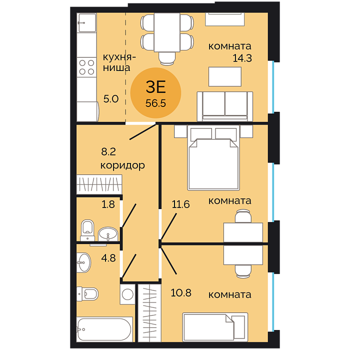 Трехкомнатная