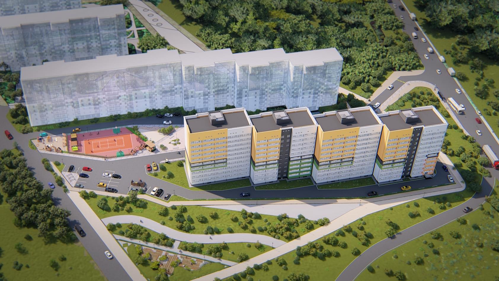 Придомовая территория спланирована с учётом общей экологической концепции. Между домами появится несколько небольших скверов и воркаутов, а у каждого дома – детская площадка. Для автомобилистов будет построена большая парковка, проезд к которой не пересекается с маршрутами пешеходов. Вы будете чувствовать себя спокойно, комфортно и безопасно. А внутри дома вас встретят уютные дизайнерские холлы.