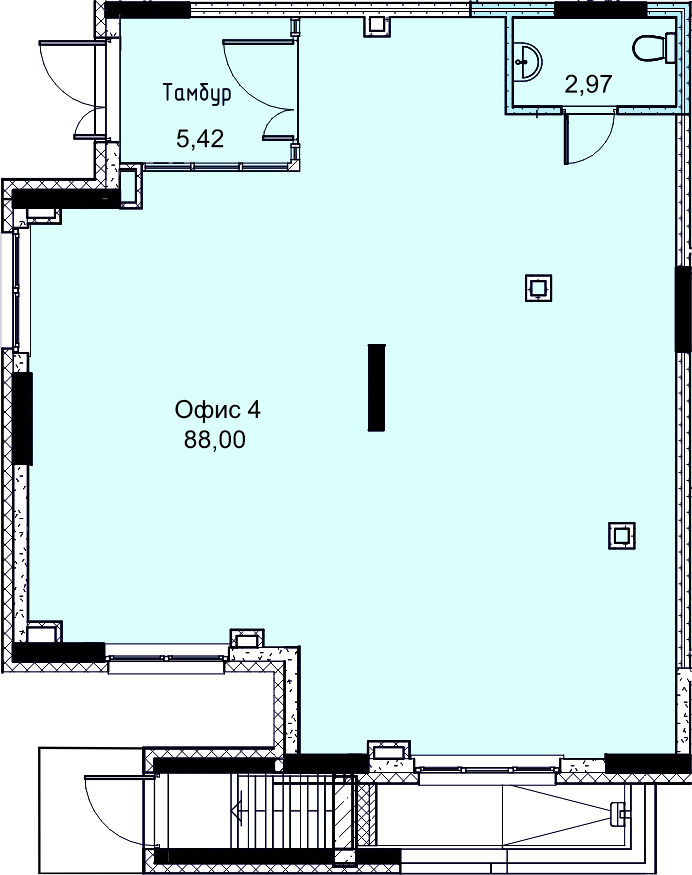 Высота потолков: 1-й этаж - 3,3 м, типовой этаж - 2,54 м