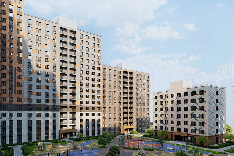 Архитектура «Красного яблока» - переменная этажность домов формирует комфортную среду, где много света и воздуха. Градиентные фасады с декоративными элементами приковывают взгляды.