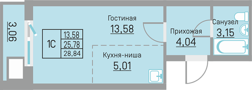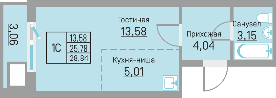 28.84 м²