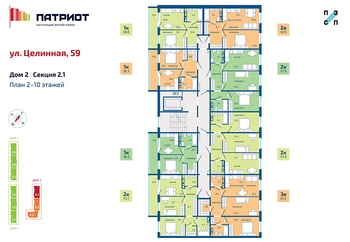Район «Патриот» расположен на пересечении улиц Целинная и Кузнецкая, что в 20 минутах от центра.