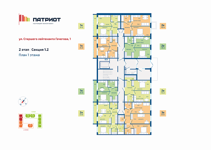 Район «Патриот» расположен на пересечении улиц Целинная и Кузнецкая, что в 20 минутах от центра.