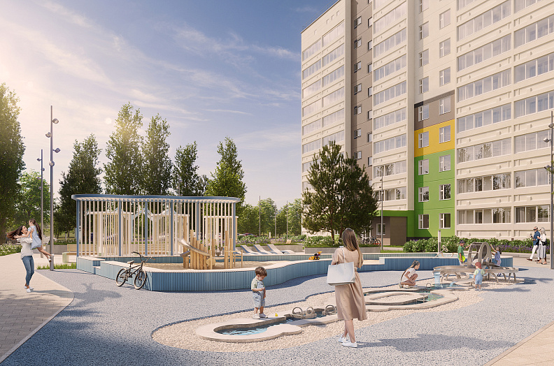 Придомовая территория спланирована с учётом общей экологической концепции. Между домами появится несколько небольших скверов и воркаутов, а у каждого дома – детская площадка. Для автомобилистов будет построена большая парковка, проезд к которой не пересекается с маршрутами пешеходов. Вы будете чувствовать себя спокойно, комфортно и безопасно. А внутри дома вас встретят уютные дизайнерские холлы.