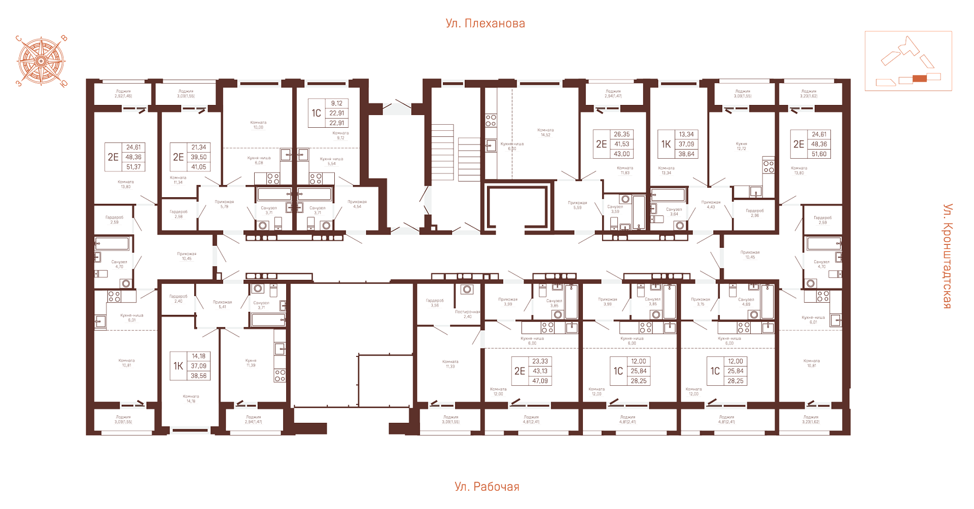 В новом ЖК вас ждет богатый выбор планировок: 1-, 2- и 3-комнатные квартиры и в классическом варианте, так и в формате «евро».