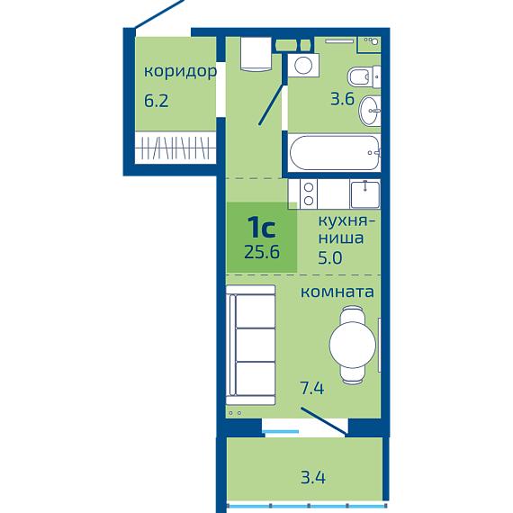 25.6 м²