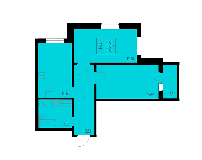 58.35 м²
