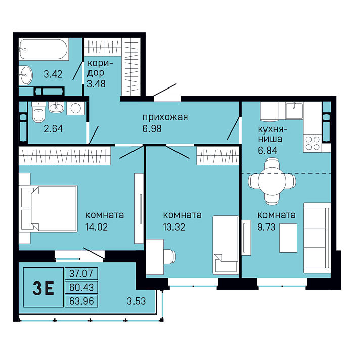 63.96 м²