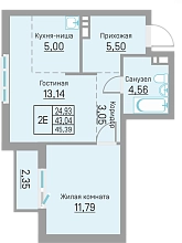 от 43.48 м²