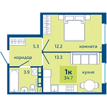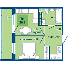 1 комнатная квартира - трансформер 36.3 м2. с гибкой планировкой позволит вам легко перепланировать комнаты по своему желанию.В вашей квартире будет: