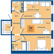 3D - экскурсия по квартире3х комнатная квартира - трансформер 61,2 м2. с гибкой планировкой позволит вам легко перепланировать комнаты по своему желанию.
