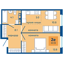 2х комнатная квартира - трансформер 55,1 м2. с гибкой планировкой позволит вам легко перепланировать комнаты по своему желанию.