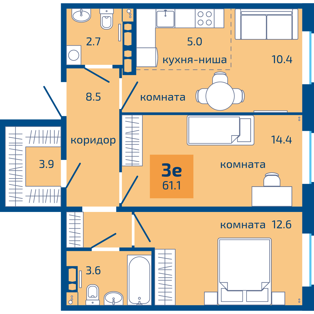 Для тех, кто ценит готовые решения, предлагается вариант «Чистовая отделка» в уютных светлых тонах. Квартира сдается полностью готовой к заселению: обои в теплых нейтральных тонах, уложены напольные покрытия, установлены плинтуса и выполнена чистовая электрика. Вам останется лишь расставить мебель и добавить детали интерьера — никаких дополнительных работ не требуется.